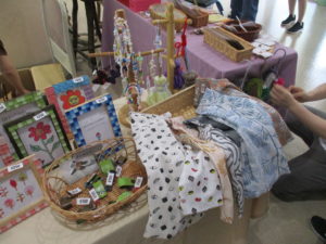 当日に間に合うのかハラハラでしたが、直前まで皆で商品作りに精を出し、何とか開催することができました。今回は夏を意識したカラフルな商品やオリジナルうちわ、大人気の“Nobue”の新作イラスト商品(フレークシールや封筒など)、メンバー作のイラスト付きメッセージカード、手拭いエコバックには園芸でその日に収穫した野菜をおまけにつけたりと、季節感&あいはな感満載で出店しました。開店前にはなんとひとだかりができるほど( ゚Д゚)!!楽しみにしてくださっている方々がたくさんいることに、メンバーも職員も感激でした( ノД`)✨昼休憩中の病院職員だけでなく、たまたま来られた入院患者様のご家族や外来患者様などいろいろな方々にご来店いただきました。ありがとうございました✨