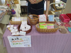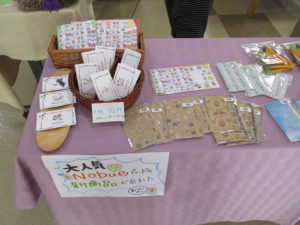 今回はその日参加のメンバー全員が店番を交代制で経験できるようにシフトを組み、ぎこちないながらも「いらっしゃいませ」「ありがとうございました」と一生懸命接客をする方、何をすればいいのか分からず棒立ちになってしまう方、顔見知りの職員と久しぶりに会えて嬉しそうに声をかける方、個人差ありながらも貴重な経験ができました。後日振り返りでは、「自分が作った品物が売れて楽しかった」「知り合いの職員が商品を買ってくれて嬉しかった」「またやりたい」など良かったことだけではなく、「自分からもっとアピールすればよかった」「商品の説明ができたらよかった」「もっと礼儀正しく細やかな接客をしたい」「あいはなの商品だと分かるロゴを作ってはどうか」など反省点や次回に向けてのアイデアなどが出て、メンバー自身も色々と感じる事の多いバザーになりつつあるなとスタッフも嬉しく感じました。ここで、印象深かったあるメンバーの感想をご紹介・・・→