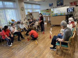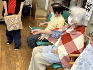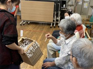 皆でひも引きゲームを楽しみましたよ(*^^*)