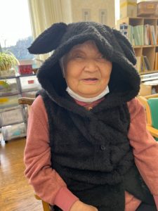 矢野さん「可愛い耳の付いたフードのベスト❣️息子さんが買って来てくれたそうです
