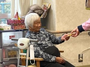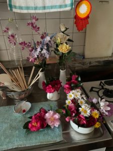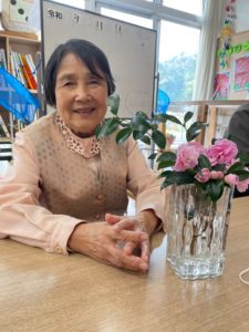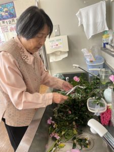 中平さん「たかこさん、自宅にて綺麗に花を生けられていました。デイにも沢山花があったので綺麗に生けてくださいました。」
