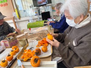 2025年12月17日 / 最終更新日 : 2025年12月17日 あがわ スタッフブログ 12月16日あがわの様子です おはようございます関です。 吉井さんの黒ニンニクと包装のシール貼りをしてくれました。 来年の干支の午年の貼り絵がもうすぐ完成です。 干し柿の準備をしてくれました。 今日も宜しくお願いします。