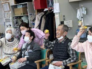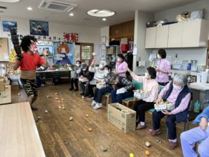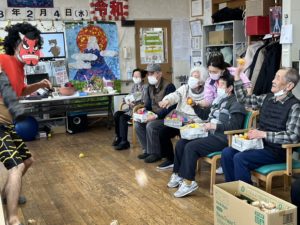 2026年2月8日 / 最終更新日 : 2026年2月8日 あがわ スタッフブログ 二月四日あがわの様子です こんにちは関です。 豆まきをしましたよ! 鬼退治です! 福の神の登場です🎁 片づけをしてくれました(*^^*) 橋本さん「ニンニク農家さんの、チラシの袋詰め作業終わりました!」