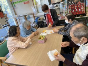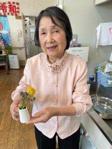 所長「歌を歌いながら〜♪作品作りで色塗り担当!!声をかけると〜懐かしいと昔を思い出して色んなお話を教えてくれました。」