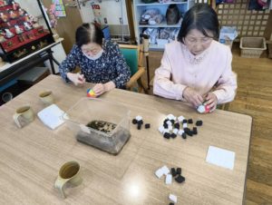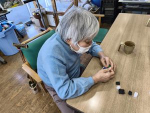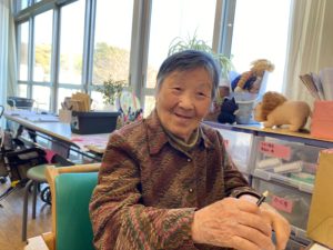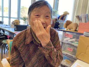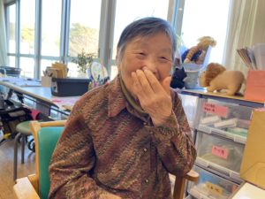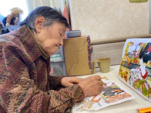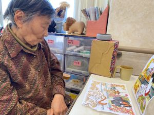 所長「歌を歌いながら〜♪作品作りで色塗り担当!!声をかけると〜懐かしいと昔を思い出して色んなお話を教えてくれました。」