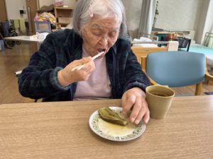 頂いたおナスを焼いて食べました。